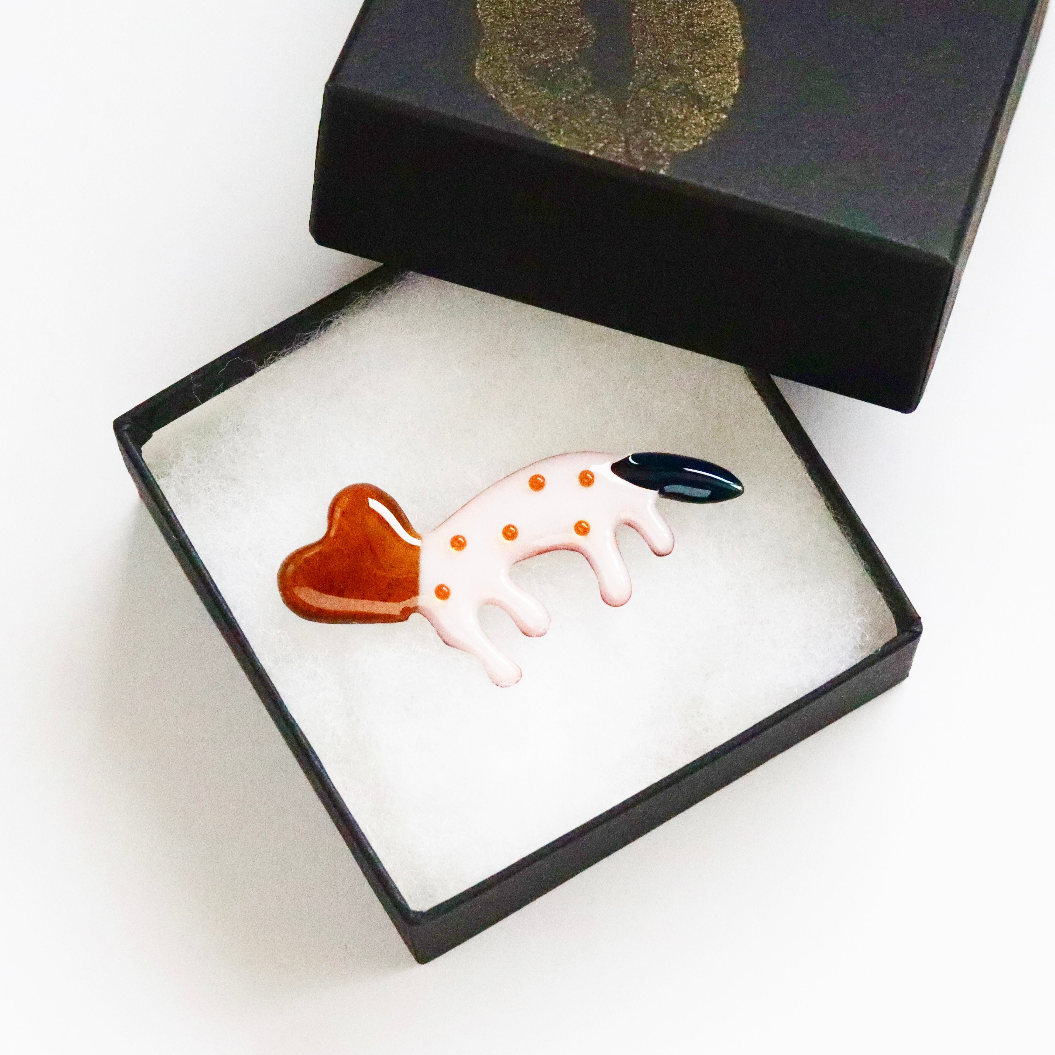 頭部がハート型のちょっぴりシュールないきものを七宝焼きで表現しました。